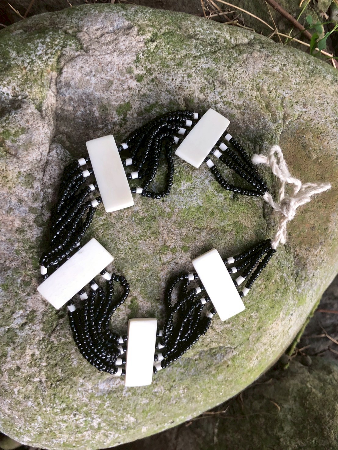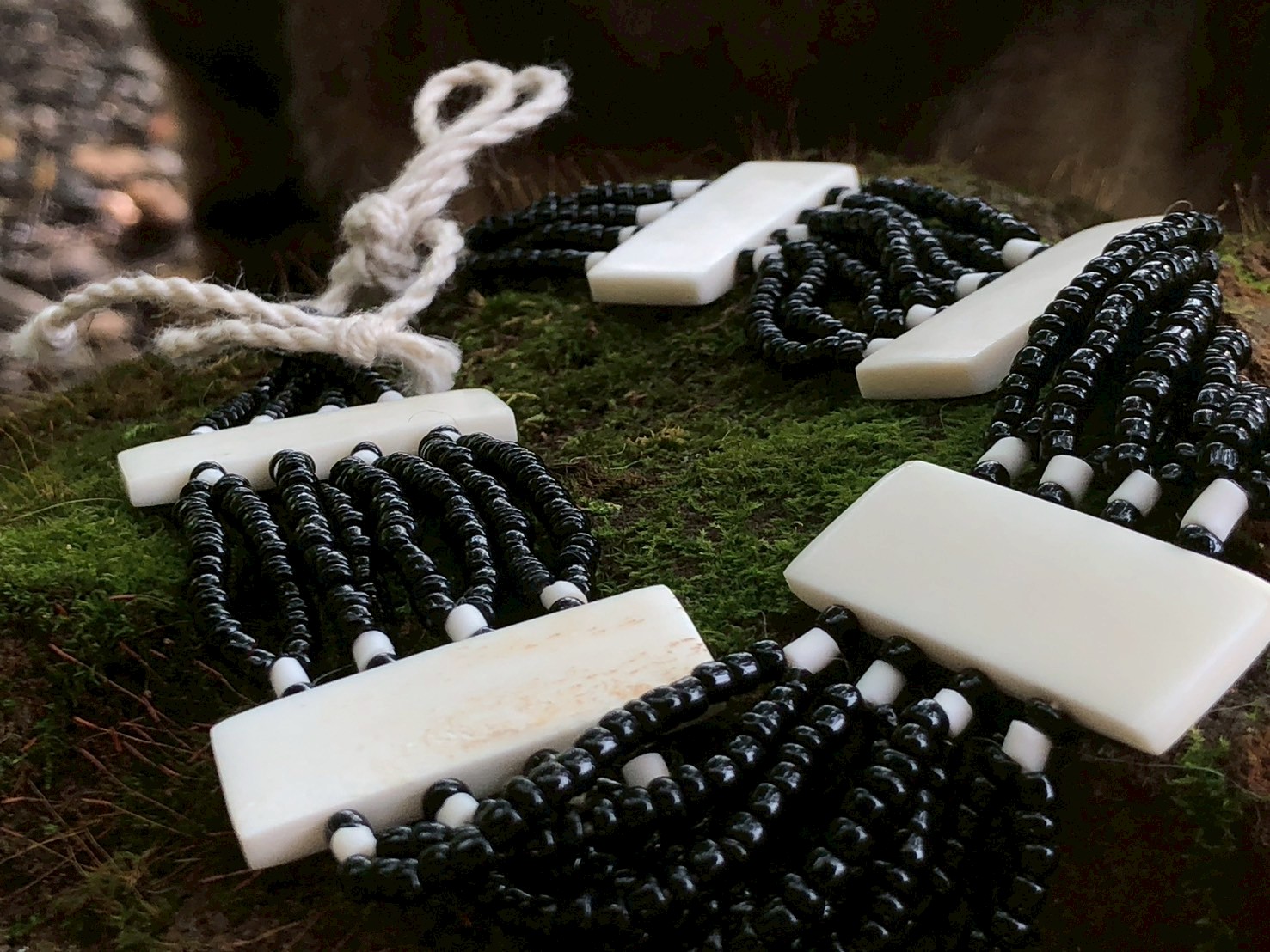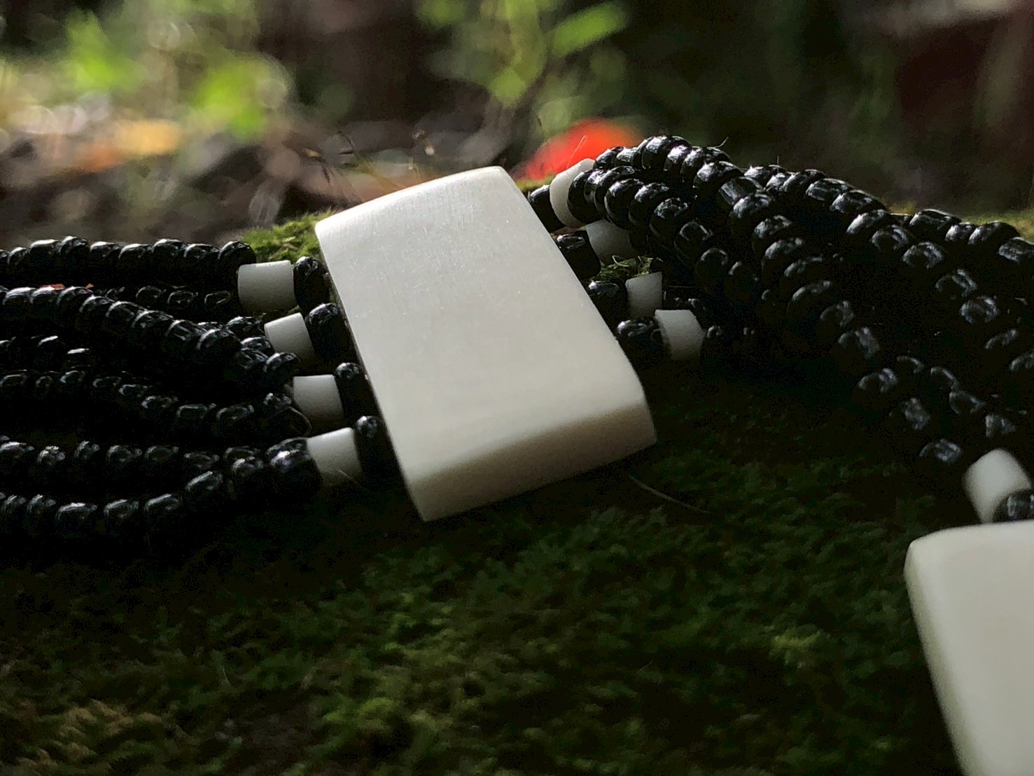 泰雅族過去以硨磲貝製作服飾與飾品,那是源自山海之間的珍貴連結。 隨著天然資源的減少與國際公約的限制,我們以獸骨取代,或與馬紹爾群島合作,讓傳統飾品的形制與精神,在當代仍能被延續與看見。