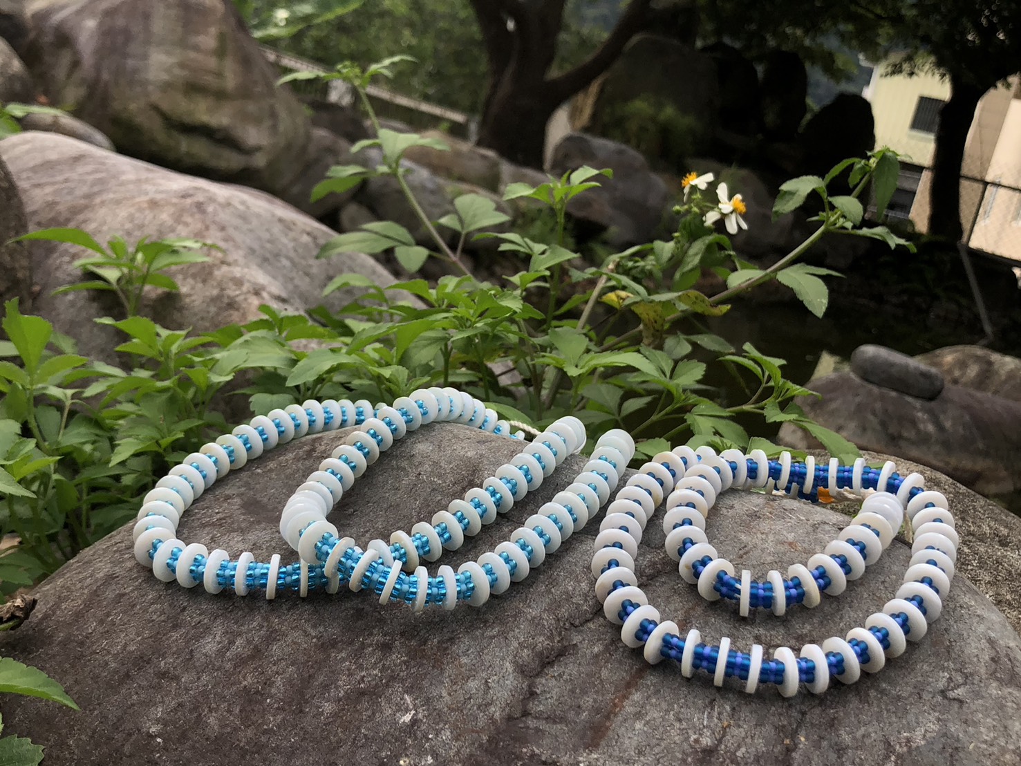 泰雅族過去以硨磲貝製作服飾與飾品,那是源自山海之間的珍貴連結。 隨著天然資源的減少與國際公約的限制,我們以獸骨取代,或與馬紹爾群島合作,讓傳統飾品的形制與精神,在當代仍能被延續與看見。